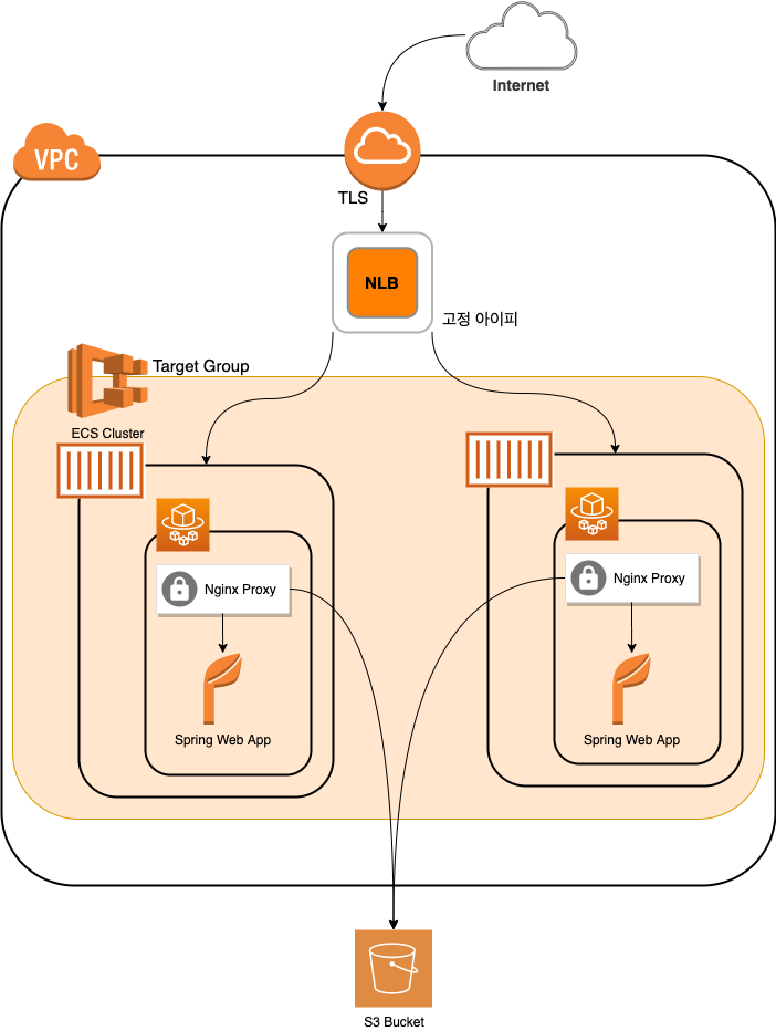 ECS로 구성된 애플리케이션의 웹 리소스의 고정아이피 구성이 필요했다. 가끔 유용하게 활용할 수 있는 사례라 구성도를 따로 그려봤다.